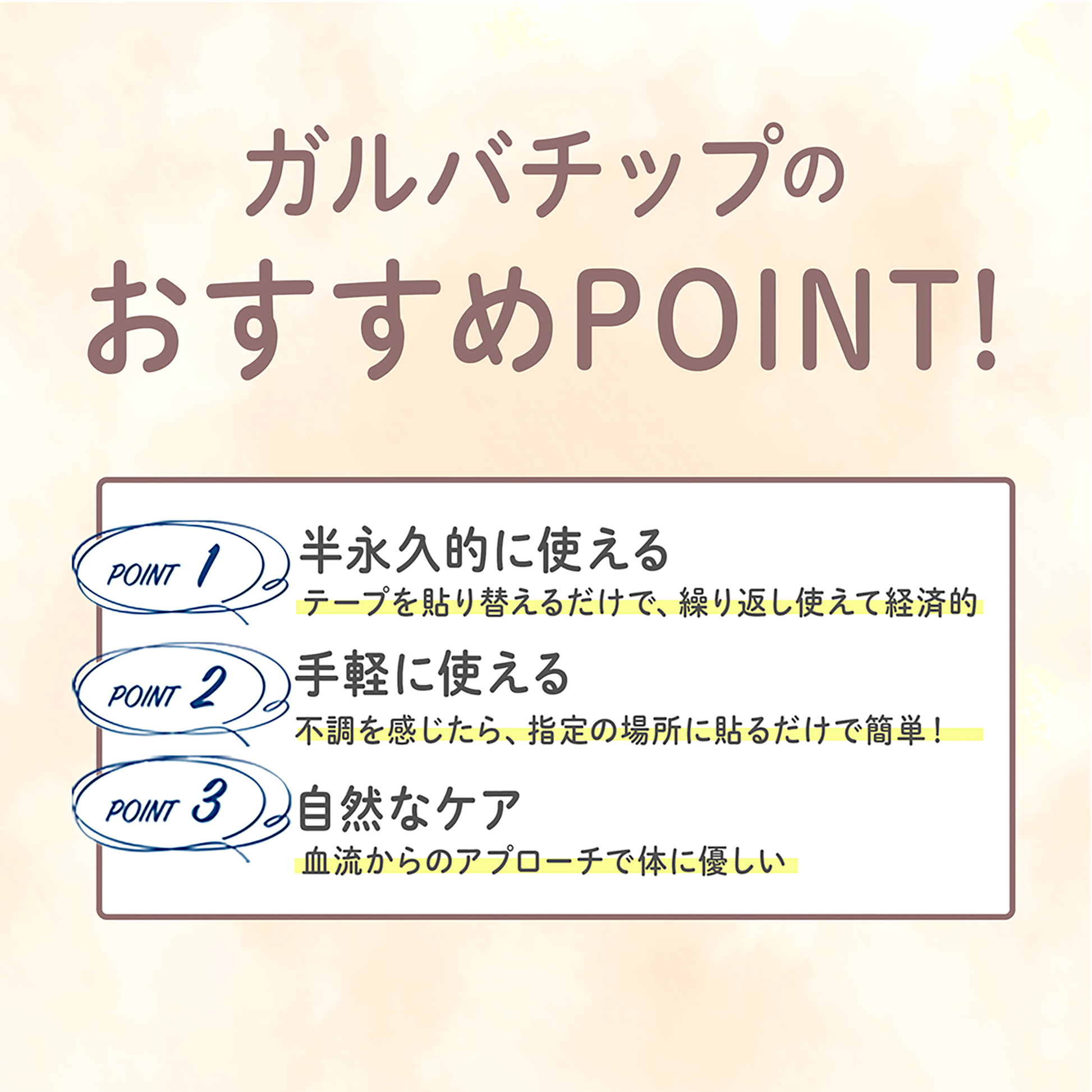 1️⃣ 不調を感じたら、ツボに貼るだけで簡単!